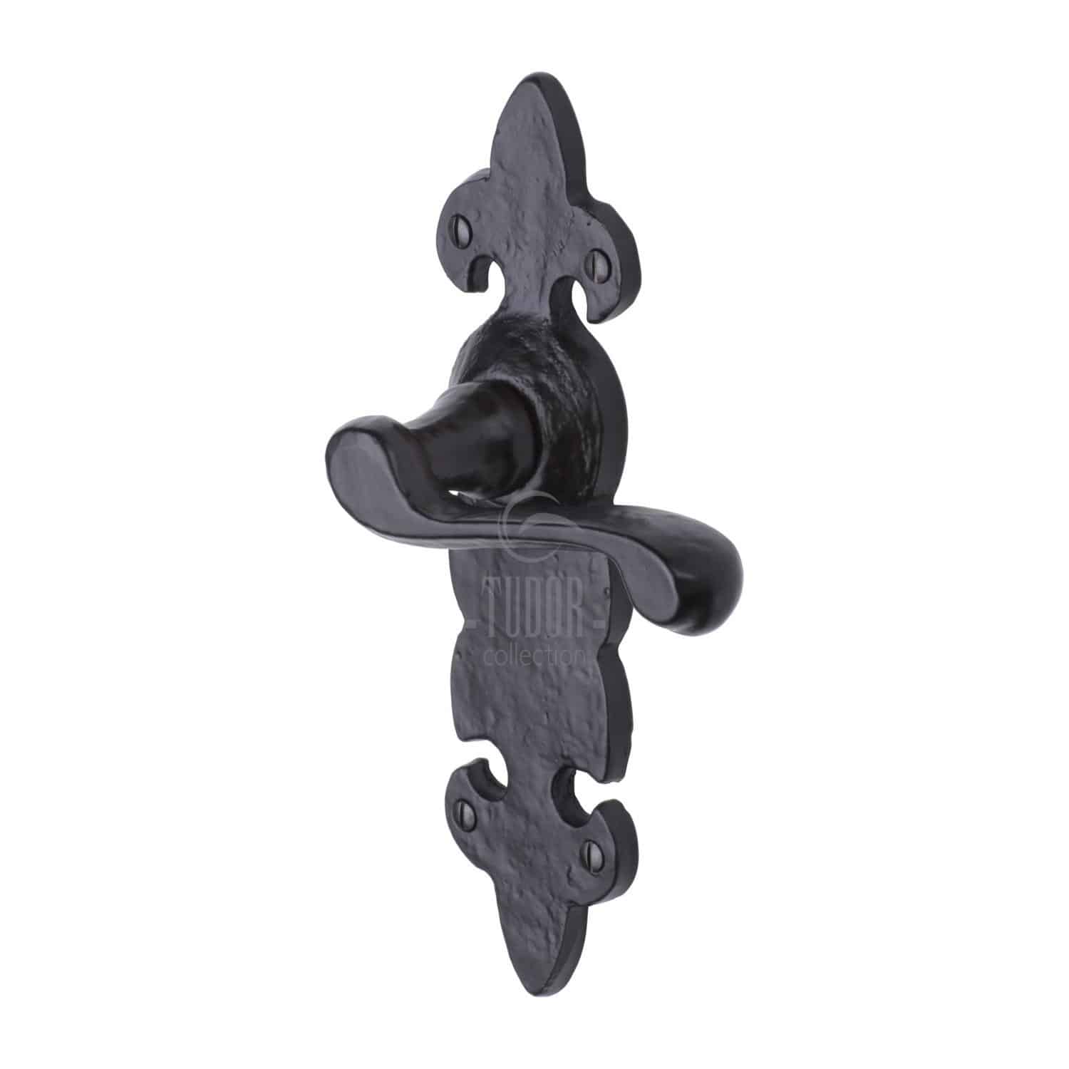 The Tudor Door Handle Lever Latch Fleur de Lys Design Black Iron