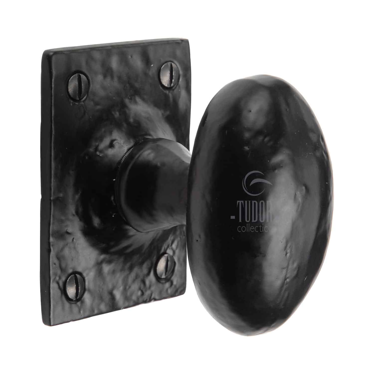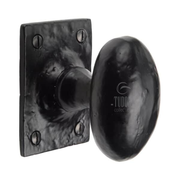 The Tudor Mortice Knob on Rose Oval Design Black Iron