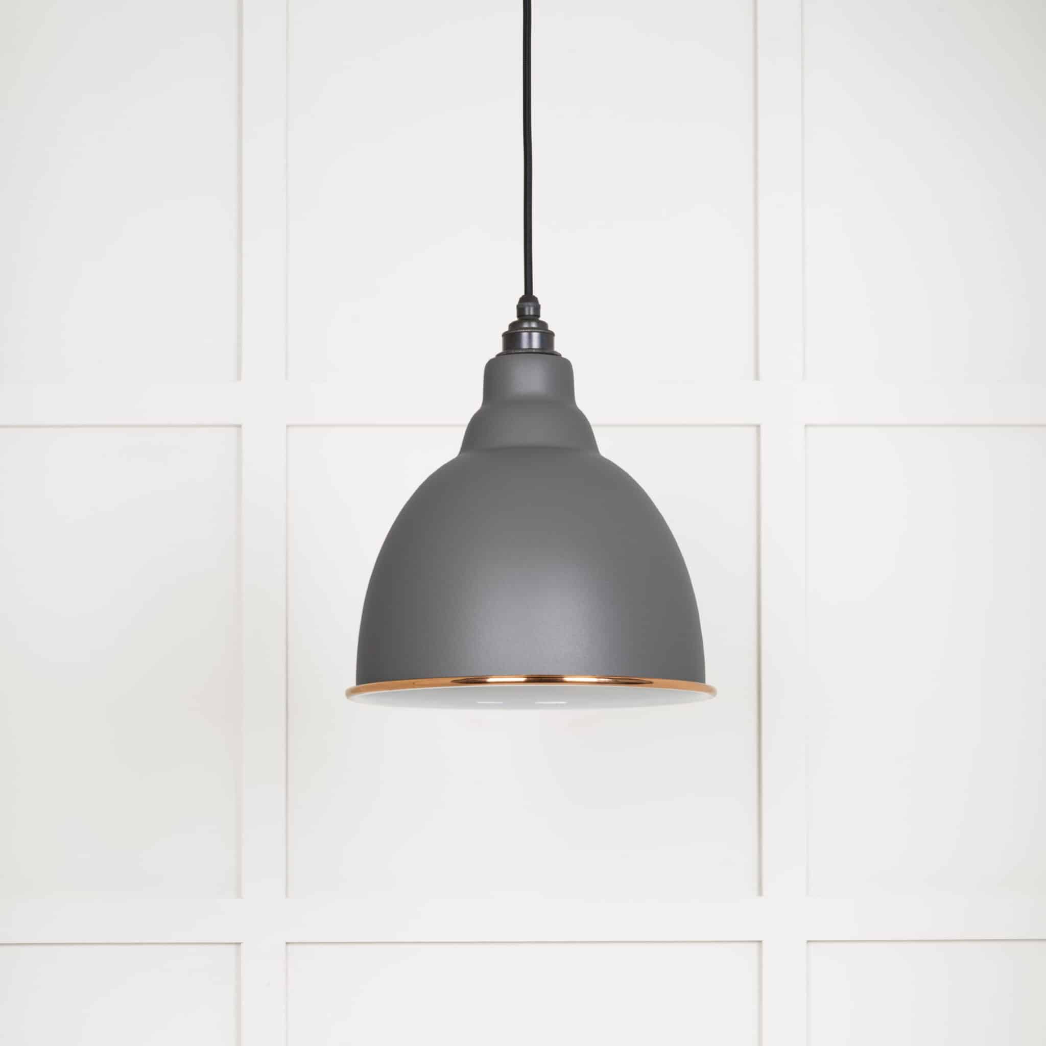 Our Accent pendants are spun from solid copper. When lit, the white gloss interior bounces light and creates a radiant glow, the brightest of our finishes. These pendants work well with a warmer bulb.