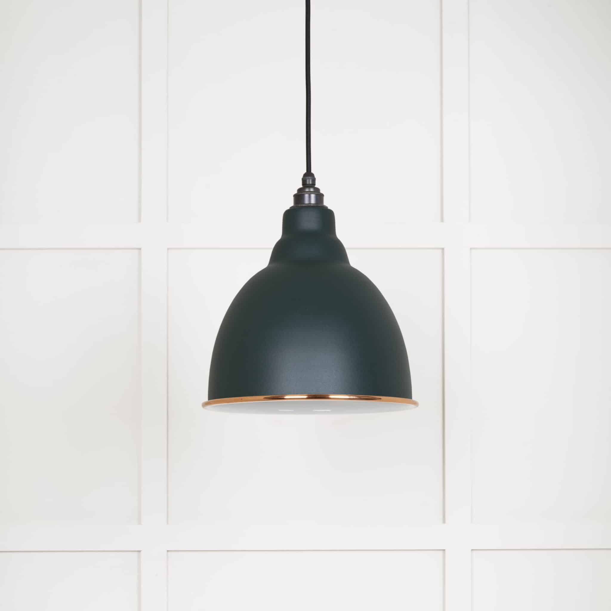 Our Accent pendants are spun from solid copper. When lit, the white gloss interior bounces light and creates a radiant glow, the brightest of our finishes. These pendants work well with a warmer bulb.